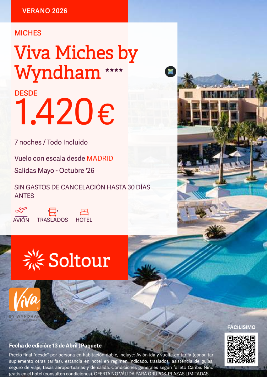 Miches (República Dominicana) en Viva Miches by Wyndham desde 1.420€, salidas de Mayo a Octubre desde Madrid